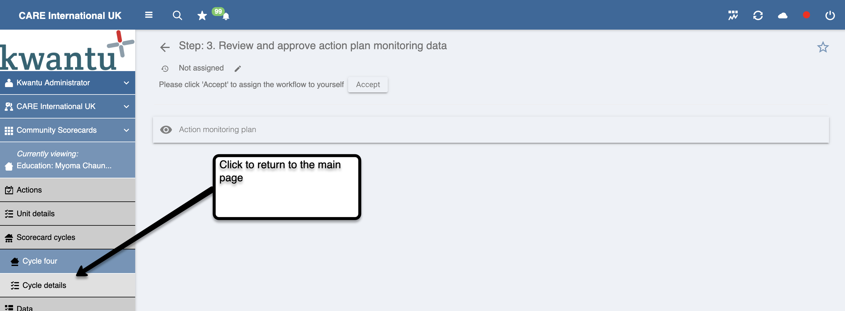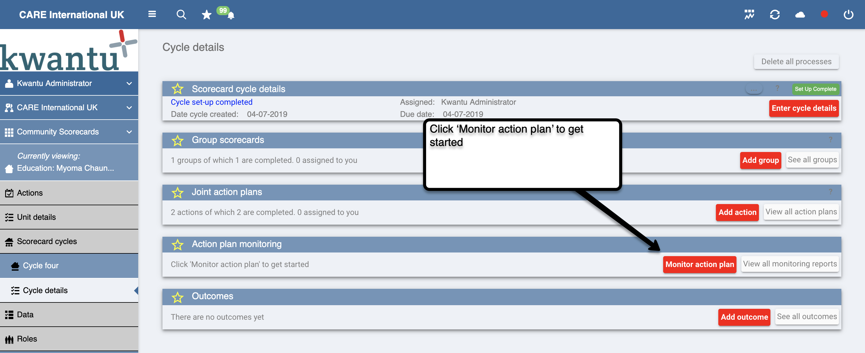 | (1) Open the unit and cycle in which you have added the action plan. Then click 'Monitor action plan' | ![]() |